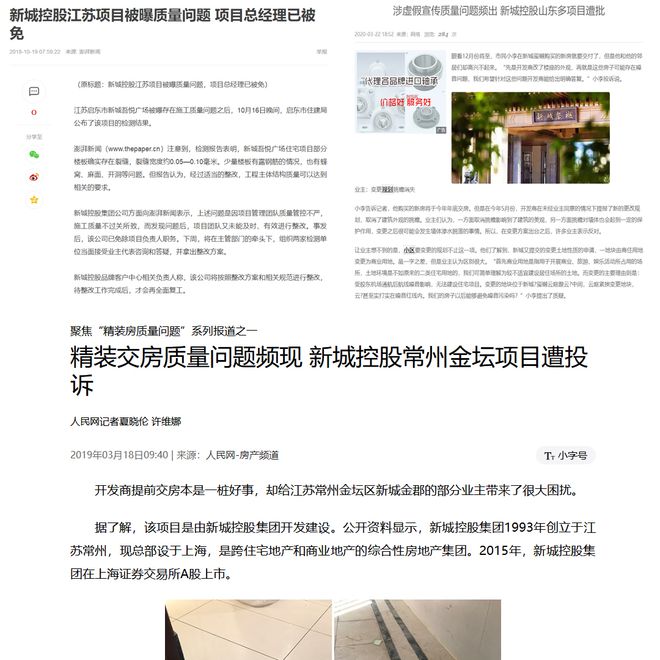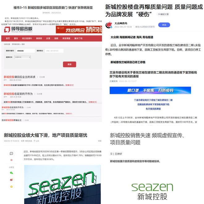 新城发展新城控股仿佛一直没有处理好自己的“品控”问题,屡屡被报道出的质量问题与自身荣誉形成了强烈对比,质量问题如今已经成为了新城品牌发展的最大“硬伤”。
