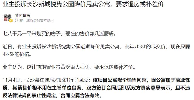 长沙县新城悦隽公园公寓大肆降价,以腰斩的价格甩卖,这波操作也让原购买业主气愤不已。