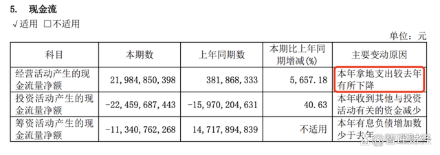 而且从其现金及现金等价物净增加额表现来看,2021年公司实现经营性现金流净额219.8亿元,但同期受偿债支出影响,全年现金及现金等价物不增反流出118.4亿元。