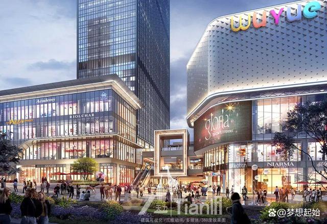 设计从山城重庆两江交汇的雄奇自然形态中吸取灵感,取义“两江新生”,建筑整体形态舒展。商业裙楼采用参数化手法解构山水,在主干道形成具有冲击力的项目形象,同时丰富变化的立面肌理结合灯饰灯光设计,提升商业氛围。设计通过通透的连廊将东西地块有机联系,组成标志性城市综合体。在室外街的设计中,凸出上下九里,两江润泽吾悦的主题,设计围绕核心中岛,形成环形动线,立面运用简洁的现代设计语言着重打造公共空间,形成有城市文化符号的空间节点。