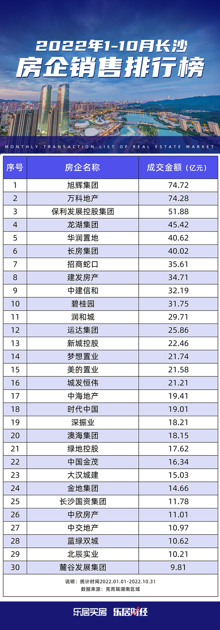其中,新城控股1-10月累计业绩达22.46亿元,环比上涨3%,位列操盘榜第十三名。新城控股自2011年起进驻长沙,陆续独立、联合开发运营了18个项目,项目覆盖长沙及环长沙经济圈,积极深耕星沙、梅溪湖等热点版块。目前新城长沙在售项目有新城观山印、新城明昱东方、新城朗隽大都会、新城恒伟汇隽风华、新城悦隽等。
