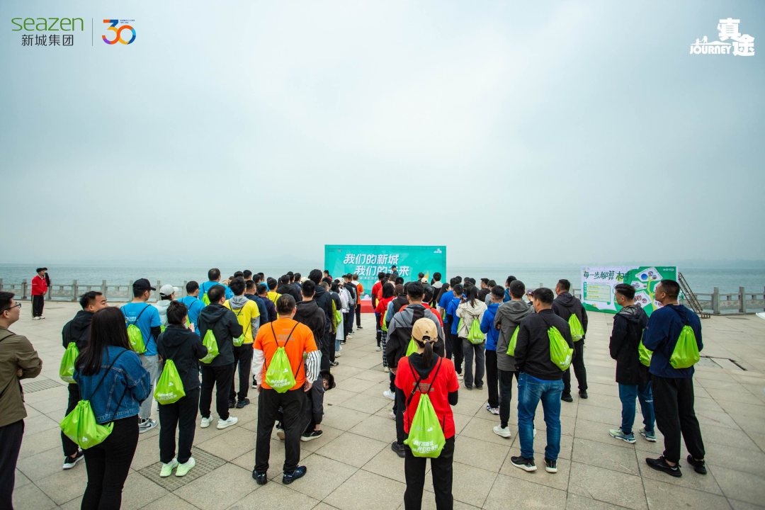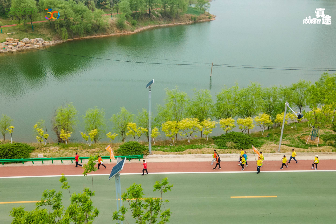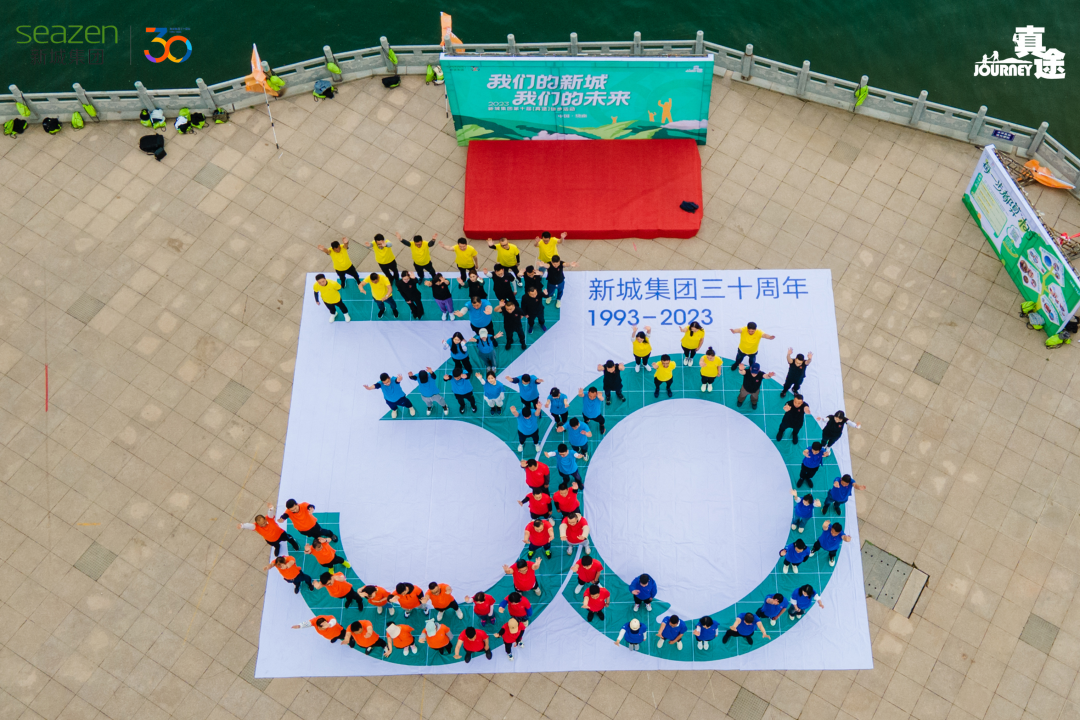 徒步挑战开启前,徒步大军精神抖擞,在湖边排列出“30”字样,彰显出新城人的凝聚力、向心力,献礼新城集团30周年。