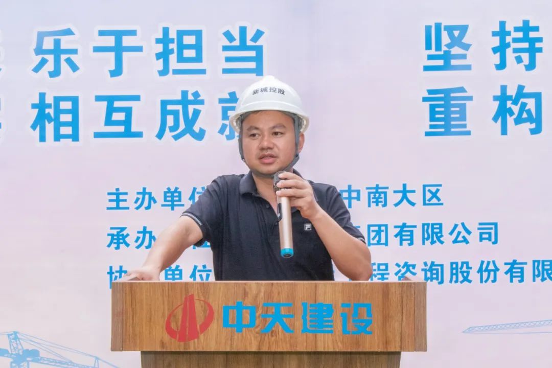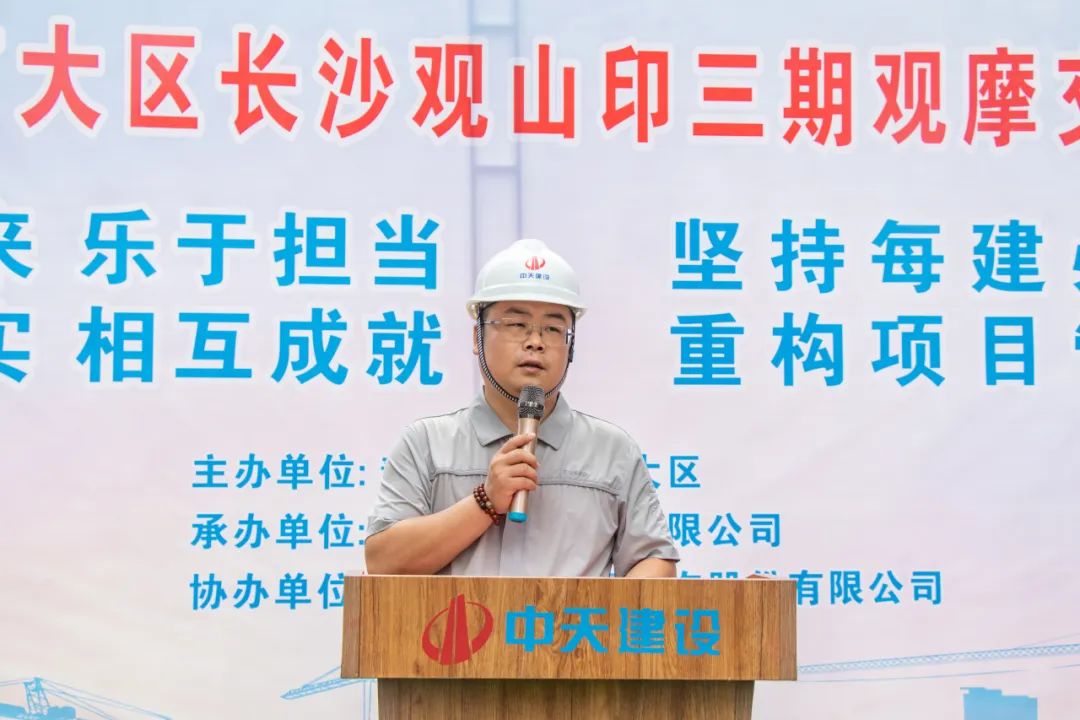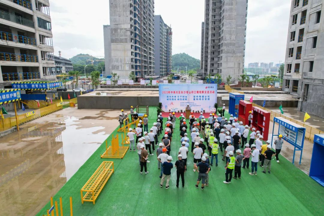 新城控股2023年中南大区观摩交流会在中天六建湖南分公司新城观山印项目举行。本次观摩会由新城控股中南大区主办,中天建设集团有限公司承办。新城控股中南大区工程总方闯、新城观山印项目工程副总监王志祥、中天六建湖南分公司工程管理中心经理何东、新城观山印项目总经理王伟梁等领导出席会议。中南大区运营管理部长沙片区及观山印项目、中南大区在建项目建设单位、供应商(施工单位、监理单位)等代表成员共100 余人参加观摩交流会。
