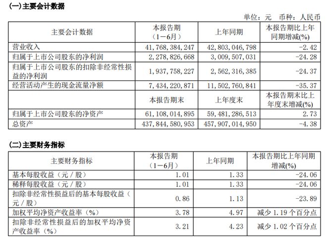 2023年上半年,新城控股实现营业收入417.68亿元,较上年同期下降 2.42%;归属于上市公司股东的净利润 22.79 亿元,较上年同期下降 24.28%,扣非归母净利润19.38亿元;公司整体毛利率19.04%。截至报告期末,已售未结转面积(含合联营项目)2949万平方米。