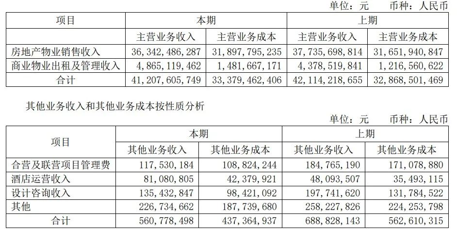 上半年,新城控股商管方面收入是增加的,从上期的43.79亿元增加到48.65亿元——这和今年全面放开有关;另一边,房地产销售收入则持续下滑态势,从上期的377.36亿元降至本期的363.43亿元。