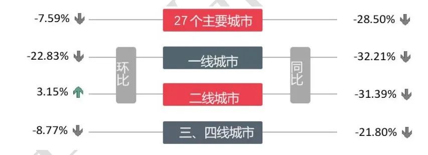 整体市场来看,此前中指院数据统计,8月楼市无论同比还是环比,成交量均在下滑。具体为一线城市成交面积环比跌22.83%,北京、上海、深圳环比跌幅显著,广州跌幅最小为5.2%。