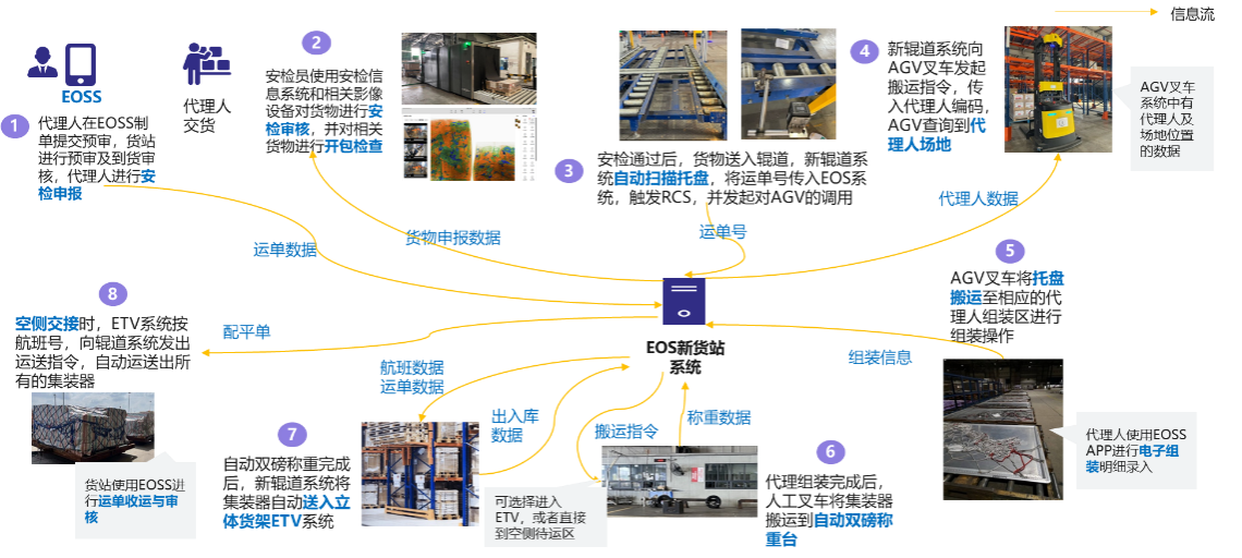 东航物流于2021年12月启动EOS研发平台暨新货站核心系统项目建设,历时2年完成,是国内首个自主知识产权的航空货站核心业务系统。项目实现了货站业务的全面线上化和移动化作业,向货运电子化、作业处理无纸化的目标迈进。系统支持智慧化、精细化运营,提高了作业效率和人均货物处理效能,提升了客户体验和满意度。