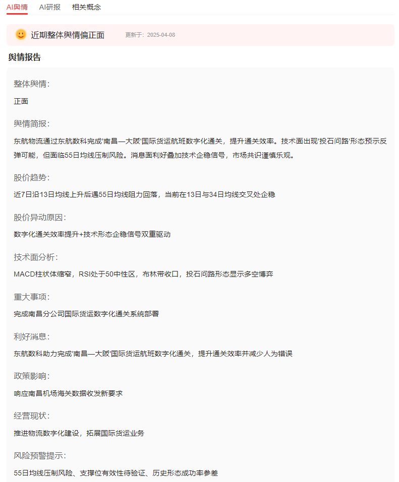本文从消息面、技术面、资金面、基本面四个维度深度剖析,带你看懂东航物流的危与机。