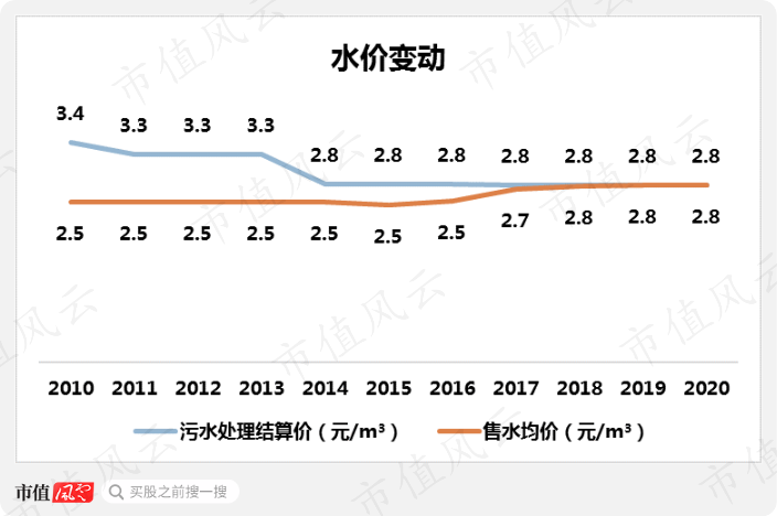 污水处理价格实行“成本+税金+合理利润”+“三年一核定”的结算方式,在目前2.8元/m3均价的基础上,预计后续两年变动不大。