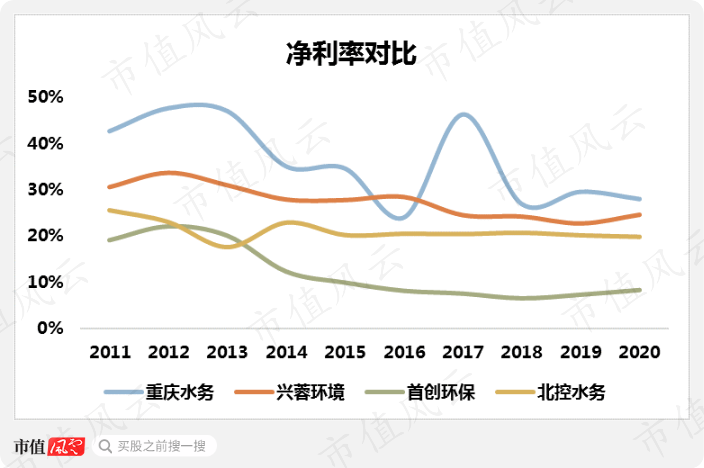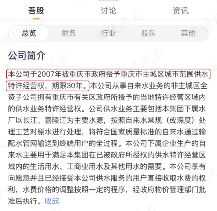 再后来,我接触到很多供水收费的公司,比如2010年在上交所主板上市的重庆水务(601158.SH)。