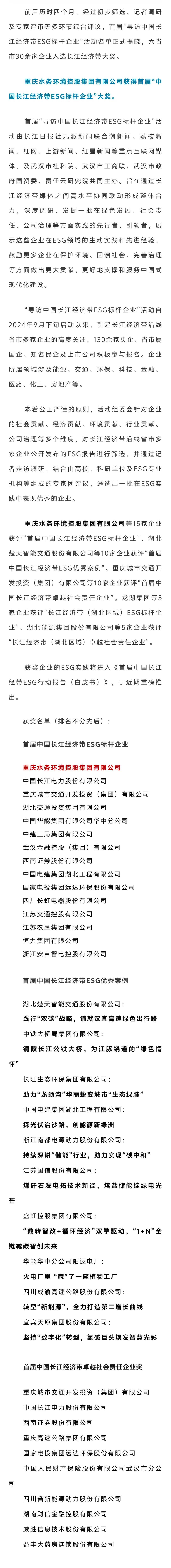 重庆水务环境集团获得首届“中国长江经济带ESG标杆企业”大奖