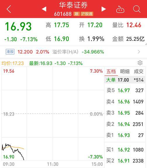 今天券商股整体低迷,另一家大券商华泰证券股价也暴跌逾6%,由于此前在伦交所发行的GDR开始可兑回,即投资者可以在伦交所买入华泰证券GDR,换成A股的华泰证券股票,在A股卖出,也可以反向买入A股,到伦交所卖出。由于两地差价,华泰证券近期也提示投资者注意投资风险。