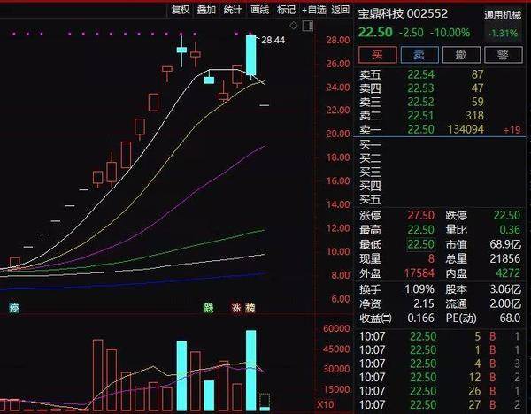 因为实控人变更的宝鼎科技,在连续出现涨停,股价暴涨2倍之后,今日开盘一字跌停,获利资金出逃明显,在上周五该股盘中就从涨停被砸至跌逾3%,今日资金则跌停夺命而逃。