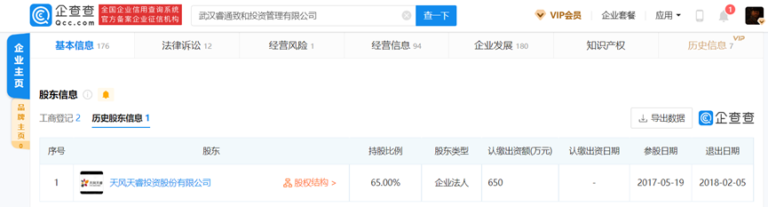 2018年2月5日,天风天睿将其持有的65%武汉睿通股权转让给武汉当代瑞通投资管理公司,后者为当代系公司。