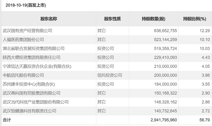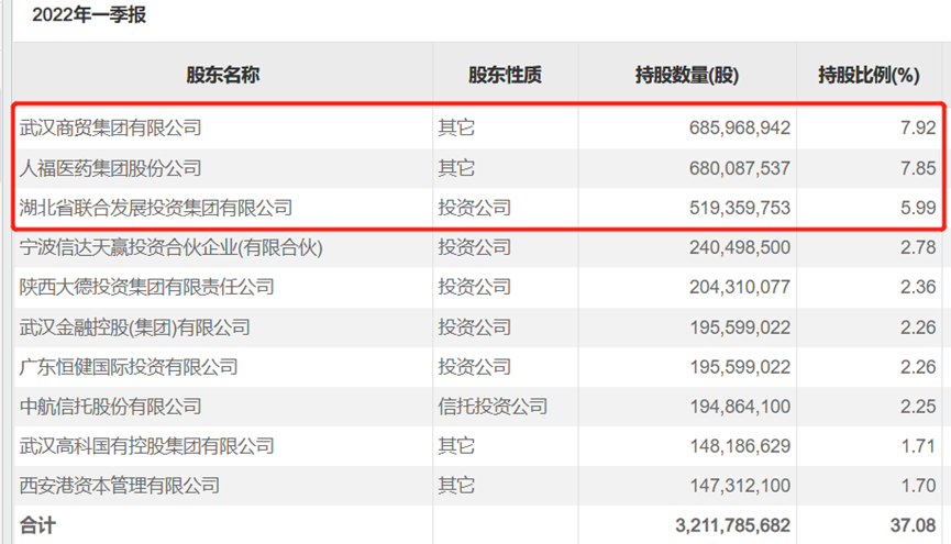 人福退出后,持股5%以上的股东全部变为国资背景股东