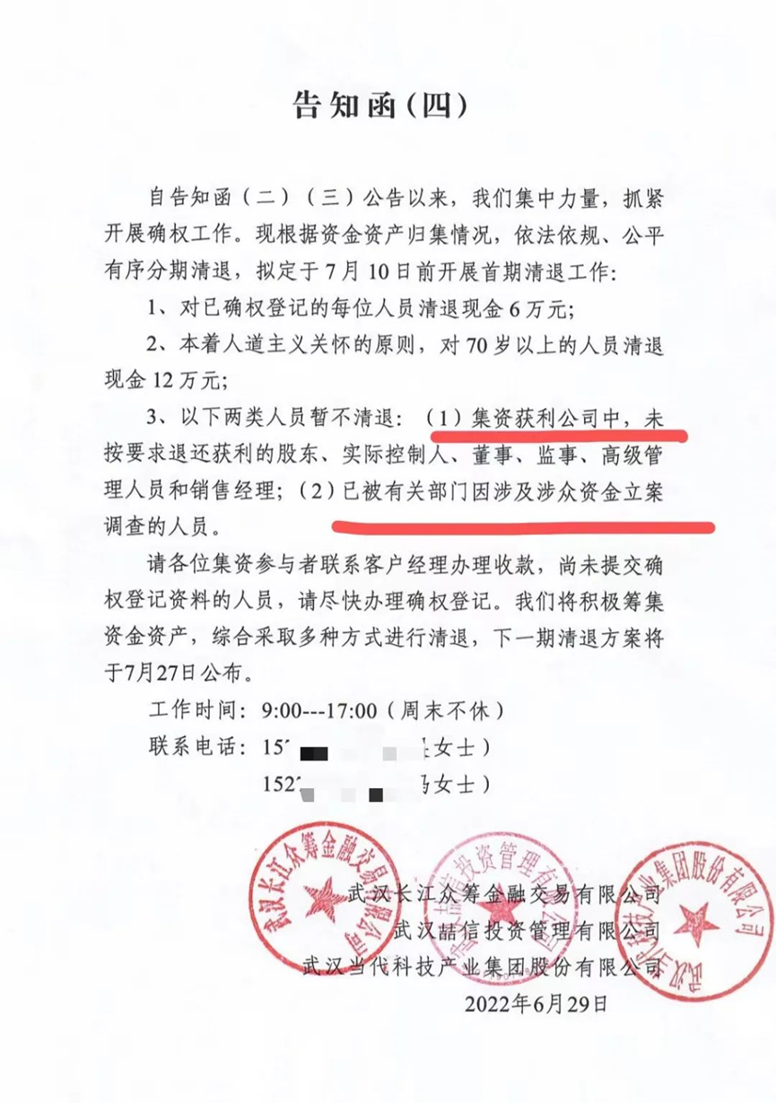 《告知函四》不仅没有解决投资人的回款问题,而且没有向投资人客户给出任何兑付方式的方案,甚至将刀口对准被当做弃子的理财经理,原来口口声声承诺的兑付方案,在一拖再拖的推延之后,拿出来的《告知函(四)》也完全是糊弄。