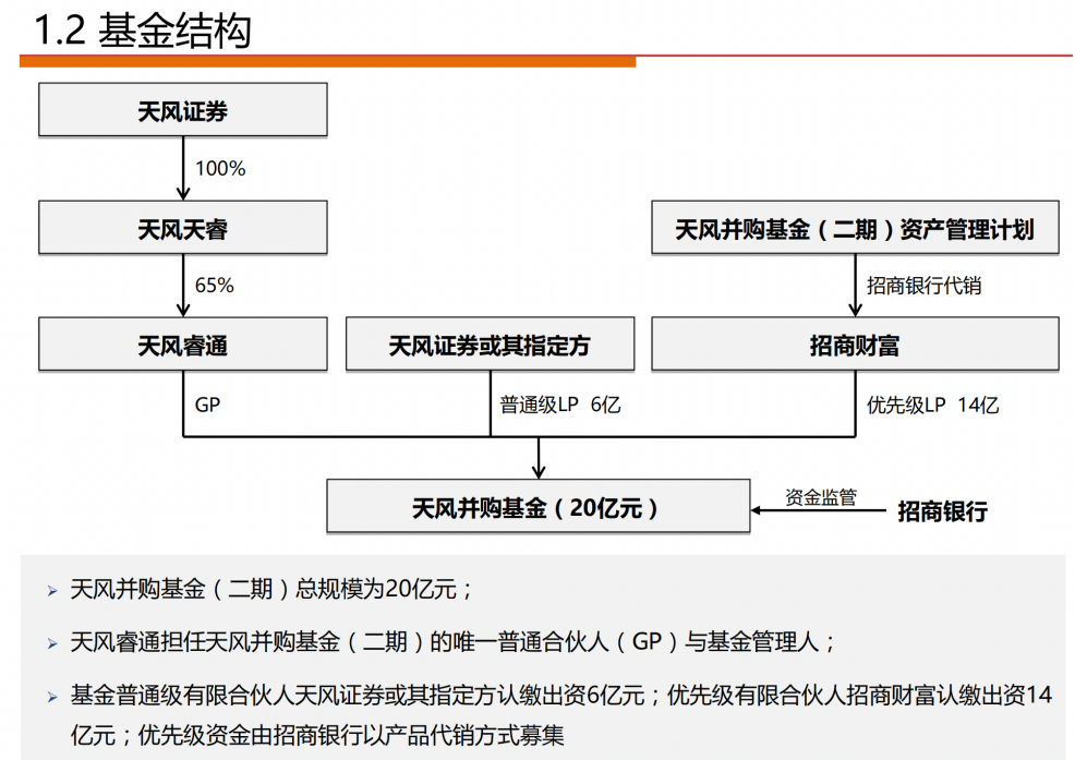 *天风并购一期、二期基金结构图,图片来源天风证券路演资料