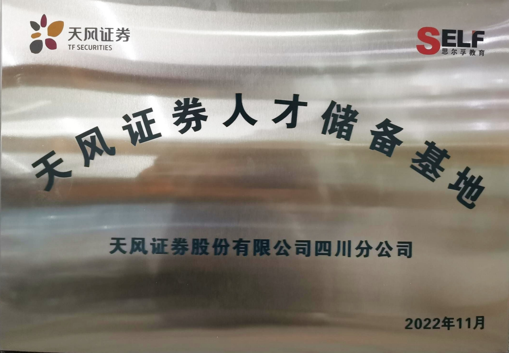 天风证券四川分公司副总经理兼内江兰桂大道证券营业部总经理艾忠海先生、天风证券四川分公司财富管理部副总经理翟连杰先生、思尔孚教育创始人阮尚文、联合创始人陈庆,以及双方员工代表出席了该授牌仪式。仪式上,天风证券授牌思尔孚“天风证券人才储备基地”,将为思尔孚学员提供有力的实习、就业支撑。