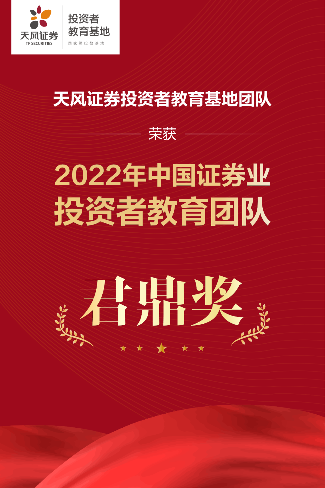 近日,由证券时报社主办的“2022年中国金融机构年度峰会”在深圳隆重举行。凭借形式多样的投教作品和扎实稳健的投资者教育能力,天风证券投资者教育基地团队摘得“2022年中国证券业投资者教育团队君鼎奖”。