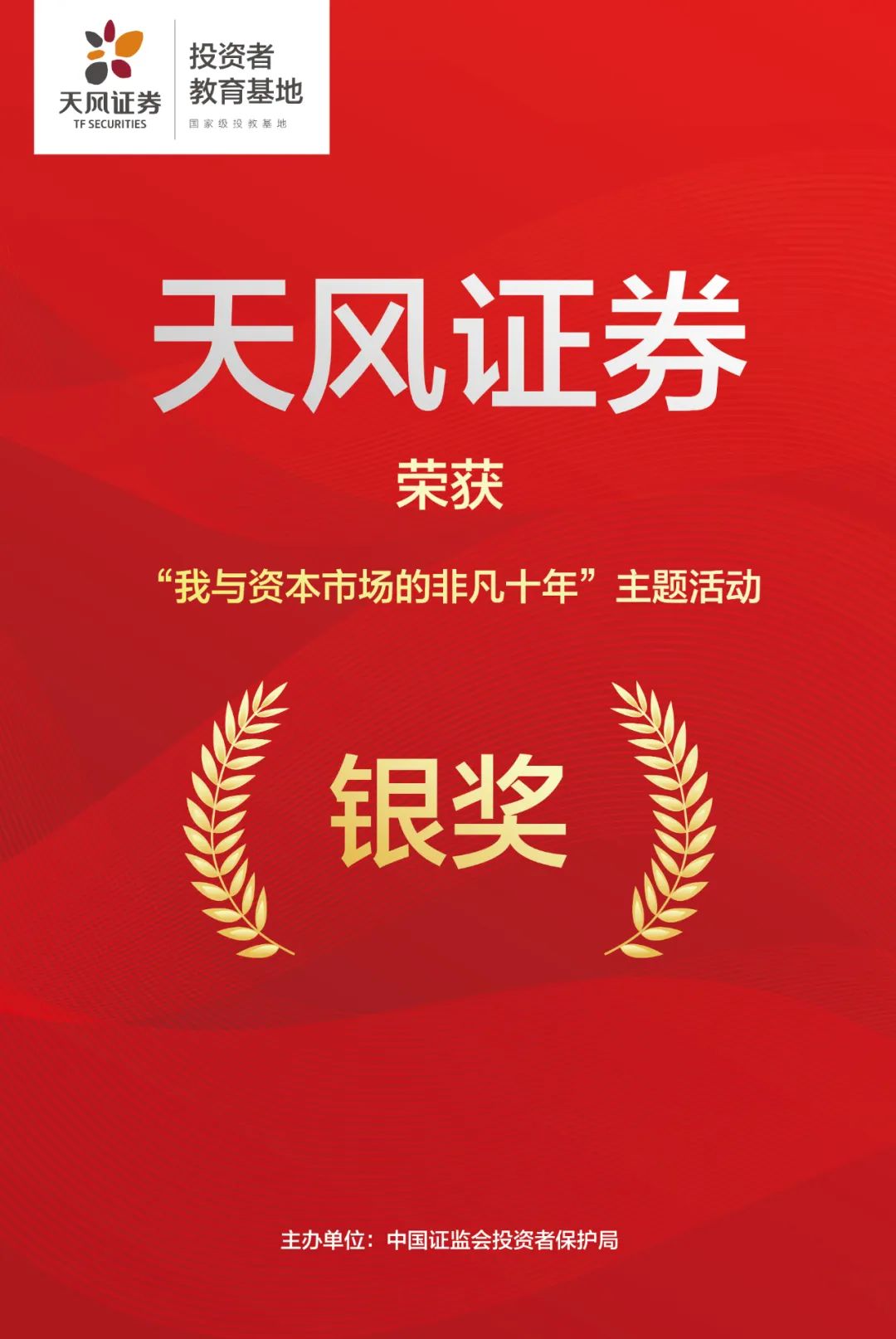 近日,由中国证监会投资者保护局主办、中证中小投资者服务中心承办的“我与资本市场的非凡十年”主题活动获奖名单揭晓。经过网络投票与专家评审等多个环节,由湖北证监局推荐、天风证券制作的视频作品《见证与成长——我与资本市场的非凡十年》从400余件参赛作品中脱颖而出,荣获大赛“银奖”。