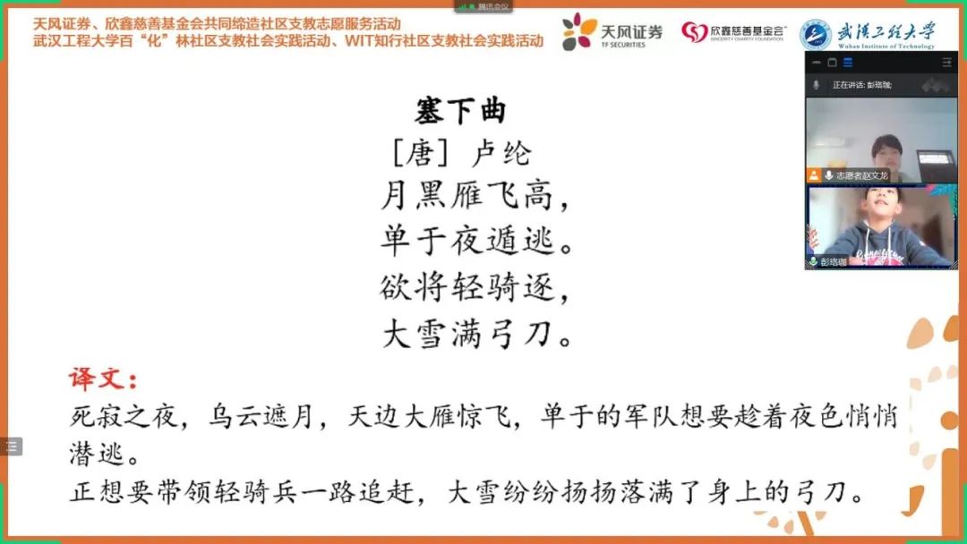 天风证券结对社区,联合高校志愿者开展“橙才计划”线上支教,助力“共同缔造”