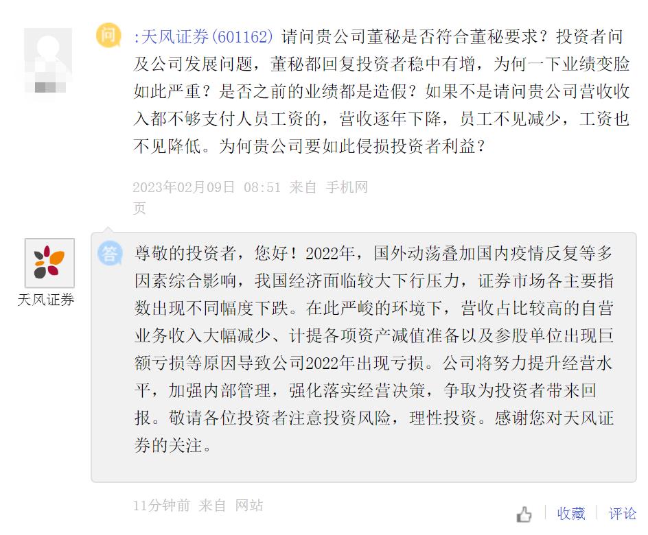 天风证券的互动平台上,有投资者质疑公司董秘是否符合要求。