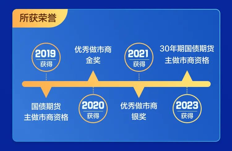 自2013年国债期货重启以来,5、10、2年期国债期货相继在中金所成功上市,经过近些年不断发展和机制改进,国债期货已成为债券市场重要的套保套利工具,为活跃现券市场流动性、构建多层次资本市场发展做出了积极贡献。天风证券在中金所推出做市商制度后,凭借自身综合实力,科技赋能实现以端到端、平台化的思路打造了具有完整自主知识产权、完全自主可控的国债期货做市系统,获得了行业内第一家也是唯一一家以自主研发的国债期货做市系统参与中金所国债期货做市业务的做市商,并连续多年荣获中金所国债期货优秀做市商奖项。