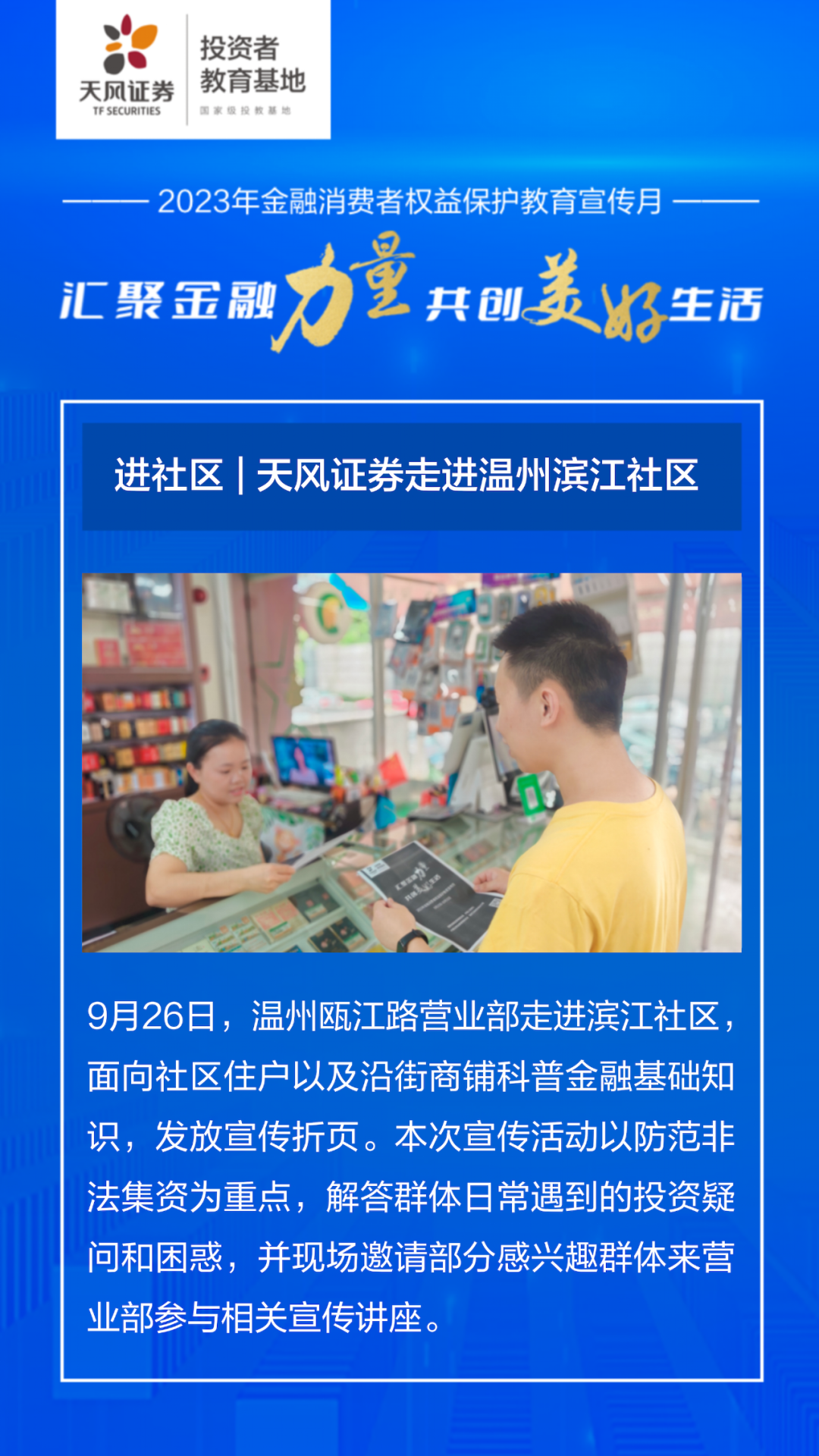 2023年金融消费者权益保护教育宣传月 | 进社区 | 天风证券走进温州滨江社区