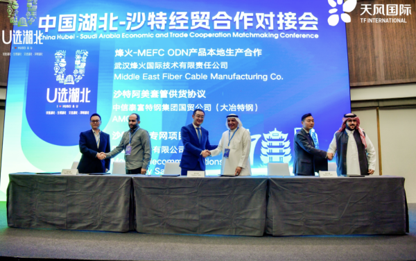 此次活动吸引来自中沙政商各界200余人参与。来自湖北的40余家企业和沙特的100余家企业参加对接会,烽火ODN产品本地生产合作、沙特光缆专网项目、百度资本人工智能产业基金战略合作等7个重点合作项目上台集中签约,涉及信息通信、高端装备、金融等多个领域。