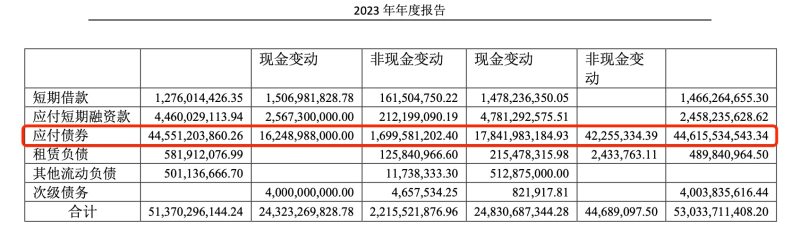 数据统计,目前其发债募资数额达到931.16亿元。截至2023年年末,天风证券应付债券账面金额为446.16亿元,占当期总资产的比例高达44.82%,比例在43家上市券商中最高,且高出行业均值近两倍。截至今年一季度末,其应付债券达到438.55亿元。