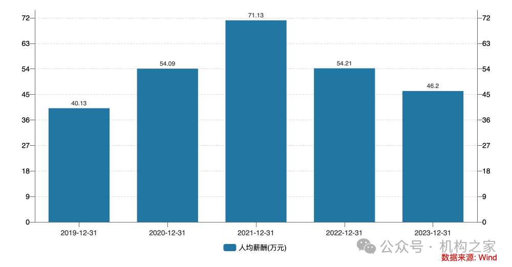 具体来看,天风证券的人均薪酬从2021年的71.13万元下降到2022年的54.21万元,2023年更是进一步降至46.2万元。这种持续性的下降趋势,与高管薪酬的上涨形成了鲜明对比。