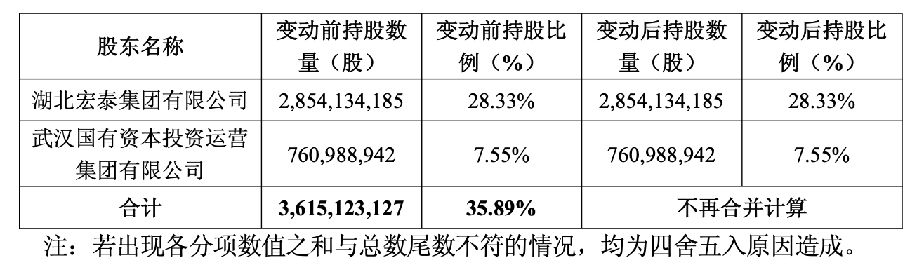 2024年6月,湖北宏泰集团披露了增持计划:未来12个月将通过集中竞价增持,金额不低于5亿元,不超过10亿元。截至2025年5月30日,湖北宏泰集团累计增持1.79亿股,占总股本的2.06%,自此湖北宏泰集团持股15.90%。