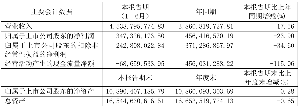 8月25日,三角轮胎(601163)近日发布2021年半年度报告,报告期内营业收入4,538,795,774.83元,同比增加17.56%;净利347,326,173.50元,同比净利减少23.90%。