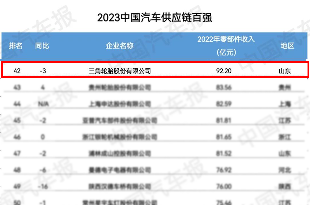 6月28日,由中国汽车报、工业和信息化部新闻宣传中心联合主办的2023金台汽车论坛在北京举行。会上发布了《2023全球汽车供应链核心企业竞争力白皮书》,三角轮胎作为优秀轮胎供应商跻身“2023中国汽车供应链百强”。