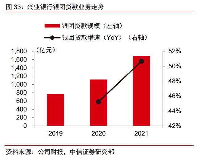 “商行+投行”组合拳深度经营。基于丰富成熟的投行融资工具和强大的资产组织销售能力,兴业银行在发掘客户、切入客户和服务客户上形成更加立体的业务优势,并与自身商行的业务形成紧密的协同,运用“商行+投行”组合拳深度经营。以晶科能源为例,兴业银行先以并购贷款及“股债结合”的投行业务服务切入客户,全程主导了晶科能源美股分拆回归科创板交易,后续又根据客户的金融服务需求展开多角度多层次的合作,通过一套组合拳与客户建立了深度绑定,并通过该客户切入整个光伏产业链。今年 1 月晶科能源科创板上市,兴业银行落地募集资金账户存款近百亿,股权投资浮盈近 10 倍,综合收益可观。