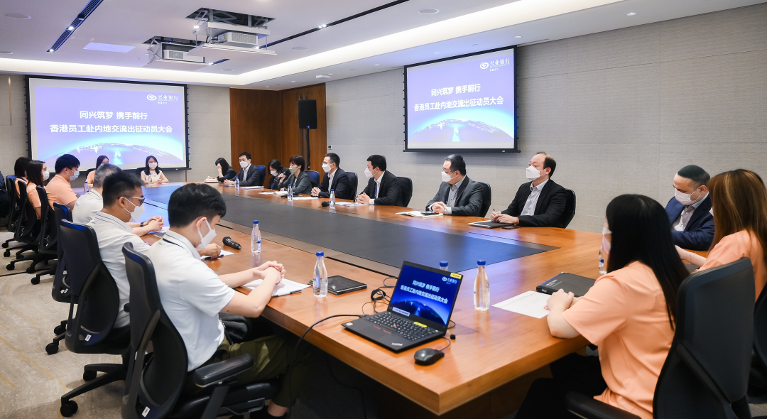 近日,兴业银行香港籍员工赴内地交流出征动员大会在香港召开。香港分行主要负责人及部分部门负责人同10位即将赴内地交流的香港籍员工、后续批次交流的东南亚籍员工代表座谈交流。
