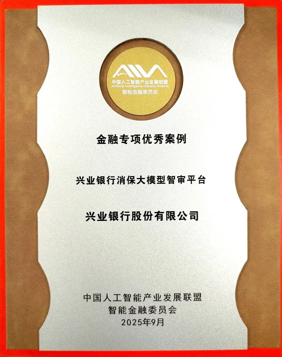 近日,在中国人工智能产业发展联盟(以下简称AIIA)、工业和信息化部新闻宣传中心、中国信息通信研究院共同举办的“AIIA 2025年人工智能先锋案例征集赛”中,兴业银行“消保大模型智审平台”案例获评“金融专项优秀案例”奖,成为该赛中金融专项赛道唯一获奖的商业银行案例。
