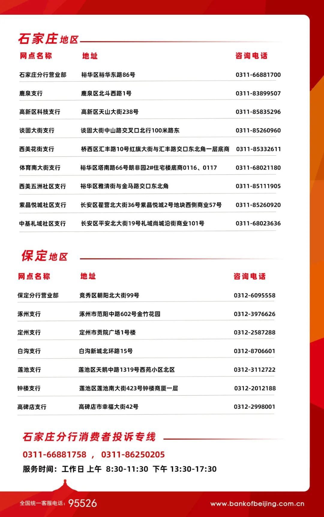 北京银行石家庄分行网点
