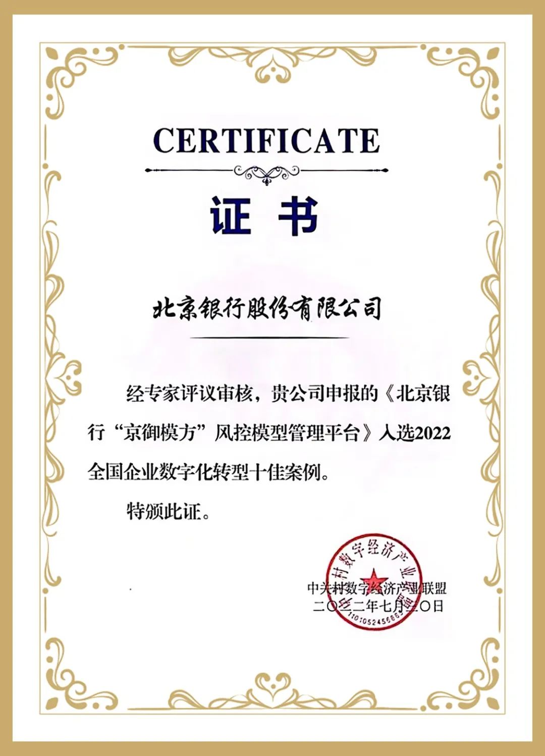 近日,在“2022年全球数字经济大会首届全国企业数字化转型高峰论坛”上,北京银行“京御模方”风控模型管理平台(以下简称“京御模方”)从众多参评项目中脱颖而出,获选“全国企业数字化转型十佳案例”。本次十佳案例遴选活动汇聚了众多国内企业数字化转型的领先探索与实践,评选出的十佳案例代表了国内相关领域数字化转型的创新热点和前沿趋势。