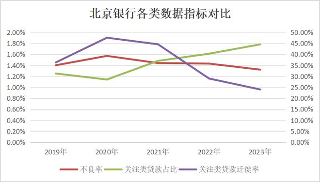 2023年末,北京银行不良率实现了连续第三次下降,而与之相对的是:关注类贷款占比连续第三次上升,这难免会引发一个猜想——北京银行是不是把一部分不良贷款藏在了关注类贷款之中?