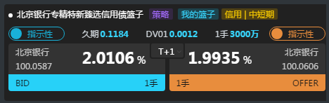 北京银行作为做市商,持续提供双边报价,整体约维持在4BP以内,保障篮子流动性,为投资者提供稳定的交易机会。
