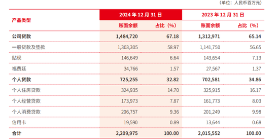 个人贷款占总贷款的比例,也从2023年的34.86%下滑至2024年的32.82%。