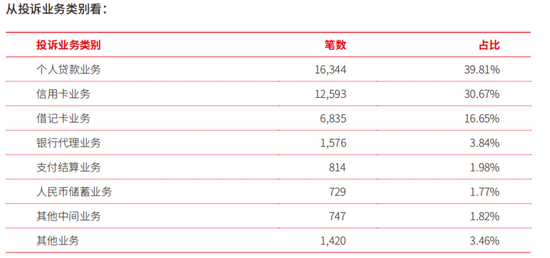 于2023年,该行办理客户投诉达到3.57万件,到了2024年,其办理客户投诉4.1万件,同比增长了约15%,投诉处理完结率100%。其中个人贷款业务投诉高达1.63万笔,占比39.81%,信用卡业务投诉1.25万笔,占比30.67%。