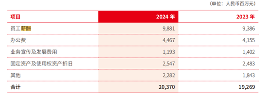 与此同时,北京银行人员数量增长带动薪酬费用增加,员工薪酬高达98.81亿元,同比增长5.27%。截至2024年底,北京银行员工人数2.01万人,较 2023 年初增长693人。