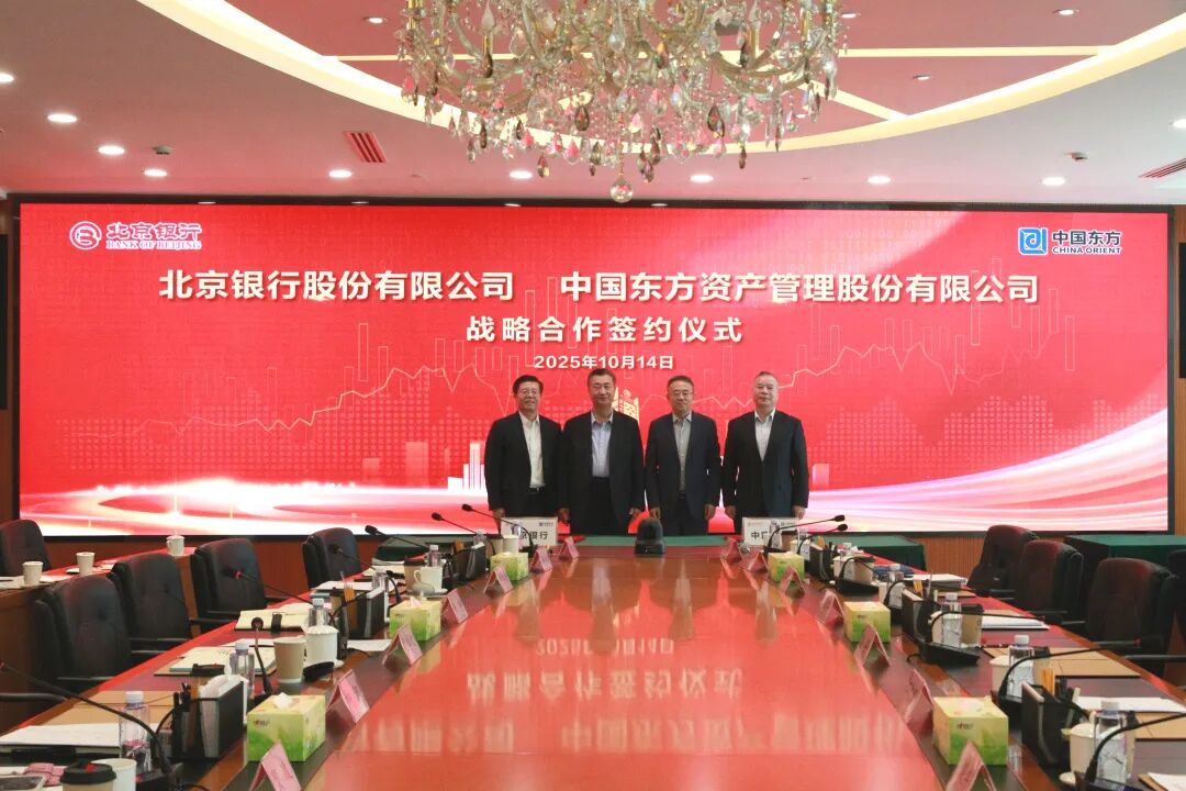 10月14日,北京银行与中国东方资产管理股份有限公司(以下简称“中国东方”)召开座谈会并签署战略合作协议。中国东方党委书记、董事长梁强,总裁、执行董事邓智毅,北京银行党委书记、董事长霍学文,党委副书记、行长戴炜等领导出席。双方围绕深化战略合作、服务实体经济等议题进行深入交流。