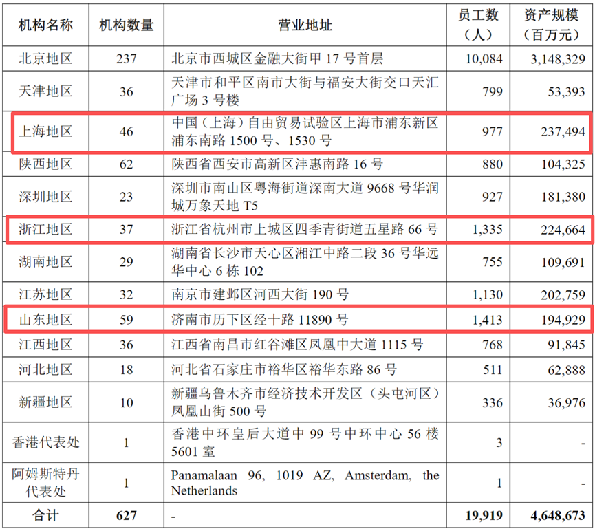 上海分行、杭州分行,都是北京银行在长三角地区战略布局的重要支点。截至2025年6月末,北京银行在上海地区的资产规模达2374.94亿元,下辖46个机构,有员工977人;在浙江地区资产规模为2246.64亿元,下辖37个机构,有员工1,335人。