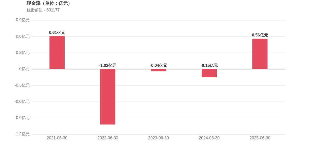 在经营稳健性方面,杭齿前进面临存货管理效率显著提升的积极变化,存货周转天数为138.38天,较2024年上半年下降了44.75%,表明公司运营效率明显改善。经营活动产生的现金流净额为0.56亿元,相比2024年同期的-0.15亿元实现由负转正,显示出公司现金流状况好转。此外,2025年上半年的资产负债率为45.01%,同比下降了2.44个百分点,这意味着公司债务负担减轻,财务结构更加稳健。