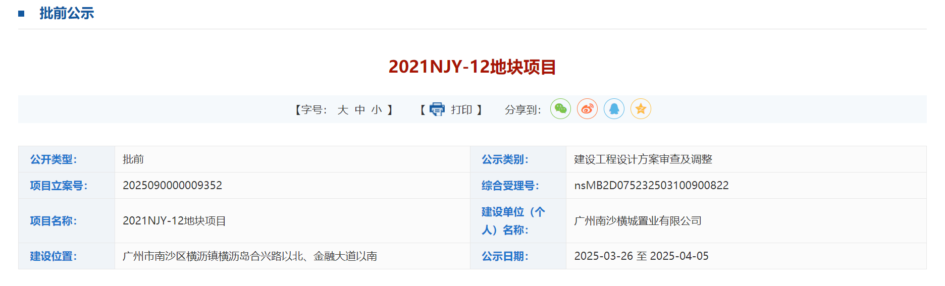 乐居财经广州赵盼盼3月26日,广州市规划和自然资源局官网挂出了2021NJY-12地块项目建设工程设计方案审查及调整批前公示。