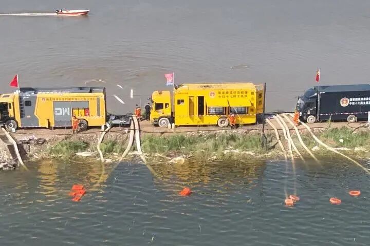 抢险救援队连接240米电缆、铺设640米水带、科学调整53个排涝作业点,在3台国内先进排水车与“机械化多点速排+冲锋舟定位输送水泵”排涝方法加持下,历时28天轮班制作业,累计排涝293.23万立方米,相当于抽干近1/5个西湖,有效填补当地救援力量,切实保障了人民群众生命财产安全。