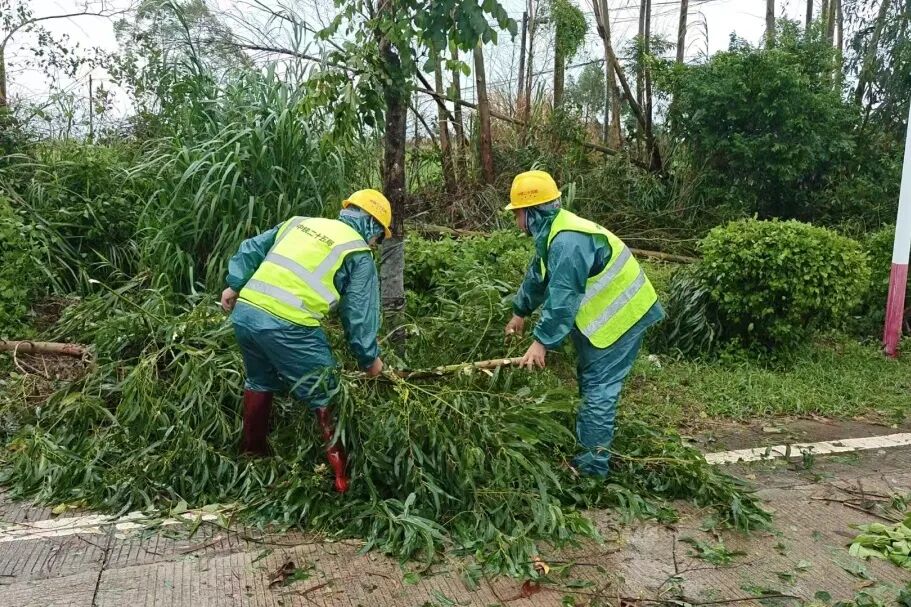 这支队伍中八成以上是阳西本地人。“有的队员刚安顿好家人,转身就上了抢险车”,现场指挥员朱奇龙说。平日里反复演练的应急预案,此刻化作从容应对的底气——450余人次轮番上阵,40台设备高效作业,最终清理2300余棵倒伏树木,修复2.1公里围挡,让“人民至上”的信念在风雨同舟中愈发坚定。